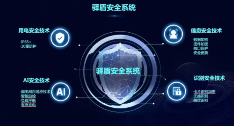 在充電樁安全領(lǐng)域,驛盾安全系統(tǒng)范圍涵蓋用電安全、識(shí)別安全、AI安全和信息安全。其中