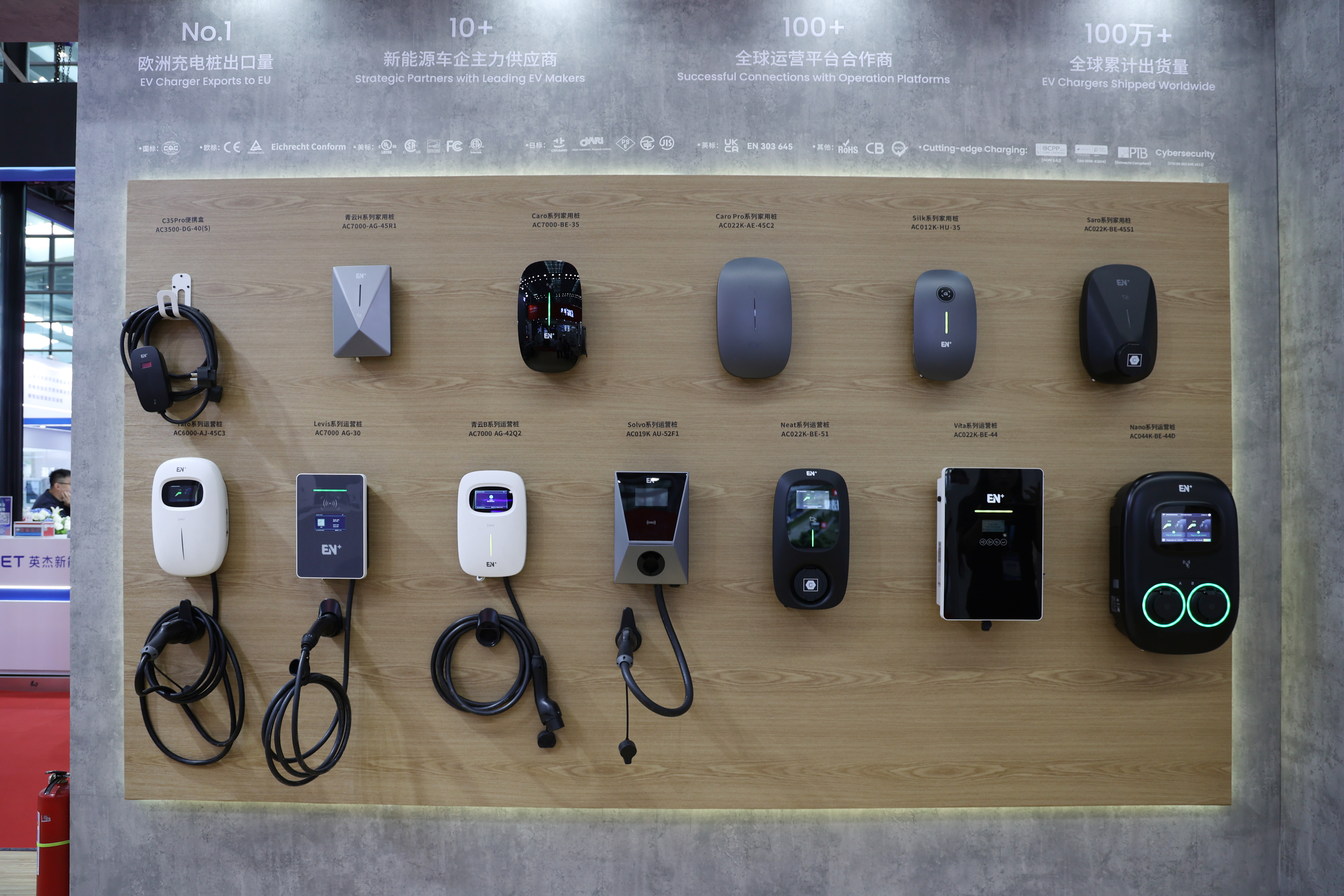EN+科技深耕充電樁行業九年,擁有業內最全的產品矩陣,獲得100多項專業認證。本次展會中,EN+科技也帶來了多款產品,從3.5kW的便攜充電盒到480kW的分體式直流充電樁,覆蓋多種充電場景。